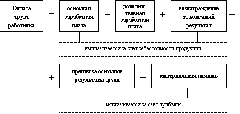 Структура оплаты труда позволяет определить, какие составляющие входят в оплату труда работника, в каких статьях себестоимости и прибыли они отражаются, каков удельный вес конкретного элемента в общей величине, заработной платы (рис. 1.1) [9, c. 51].