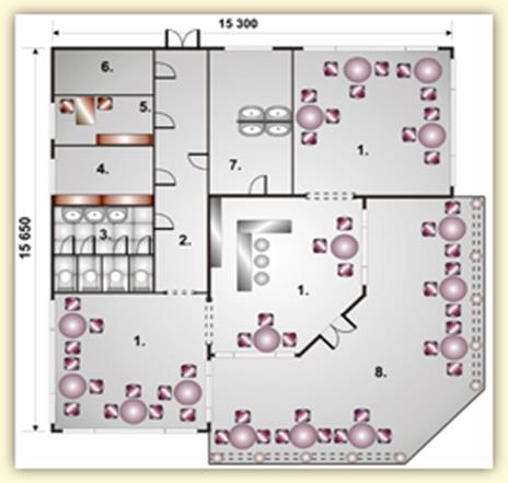 Правильная планировка помещения в ресторане преследует три цели: предоставление максимального удовольствия посетителям, эффективное обслуживание и обеспечение максимального числа клиентов.