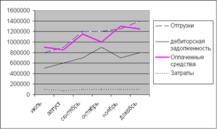 (см. графики отгрузок и оплаченных средств за период январь 2005 – июнь 2005, динамику работы ООО «Монолит-Кемерово» за 2-е полугодие 2006 г.)