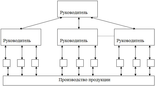 Линейная схема (рис.1.) хорошо работает в небольших социальных организациях при высоком профессионализме и авторитете руководителя; а также большой заинтересованности подчиненных в успешной работе социальной организации.