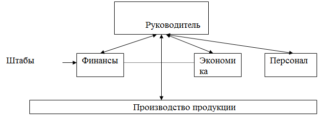 Эти штабы готовят руководителю проекты решений по соответствующим вопросам. Затем руководитель принимает решение и сам доводит его до соответствующего подразделения.