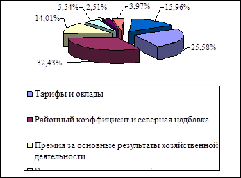Рис. 4. Структура ФЗП в ОАО «Северные МН» за 2004 год