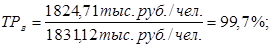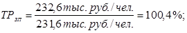 – темп роста реальной среднегодовой заработной платы 1 работника, %.