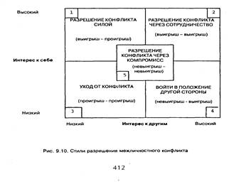 Межличностный конфликт вовлекает двух или более индивид дов, если они воспринимают себя как находящихся в оппозиции друг к другу с позиций целей, расположений, ценностей или поведения! Это самый распространенный тип конфликта. Индивиды, вступившие в межличностный конфликт, имеют 5 возможных путей выхода из него.
