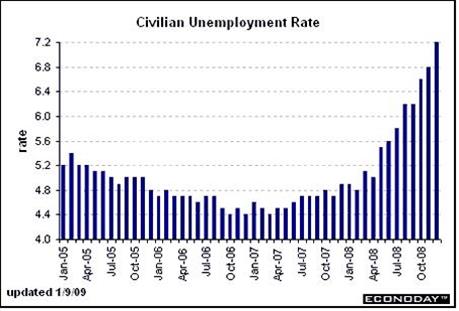 Рассмотрим, как экономический кризис сказался на состоянии экономики различных стран. Во-первых, высокая инфляция во многих странах мира, которая стала следствием антикризисной «накачки» экономик деньгами, но она же и помогает правительствам справиться с гигантскими долгами, обесценивая их. Сейчас объем госдолга сравним с периодами мировых войн. Рассмотрим более подробно состоянии экономики США на конец октября 2009 г. ВВП США в III квартале 2009 года вырос, по предварительным данным, на 3,5%. Об этом сообщило 29 октября Министерство торговли США. Во II квартале 2009 года американский ВВП упал на 0,7%. Росту ВВП в III квартале способствовало увеличение потребительских расходов, рост объема экспорта и частных товарно-материальных инвестиций, а также правительственных расходов. Расходы и инвестиции федерального правительства повысились. В США объем промышленного производства в сентябре 2009 года по сравнению с предыдущим месяцем вырос на 0,7%. В годовом исчислении объем промышленного производства в США в августе 2009 года снизился на 6,1%. Коэффициент использования промышленных мощностей в сентябре текущего года вырос на 0,6 процентного пункта и составил 70,5%. Экспорт снизился на 33,4 млрд. долл., или на 20,7%, импорт - на 63,6 млрд. долл., или на 28,6%. Потребительские цены в США выросли в сентябре. Рост цен на автомобили, энергоносители и медицинские услуги сгладили первое в текущем году падение стоимости аренды жилья и платежей за жилье. Согласно оценкам, безработица в США в октябре выросла до 9,9% — максимального уровня с 1983 года, по сравнению с 9,8% в сентябре (рисунок 3 — официальная статистика). Число рабочих мест в американской экономике сократилось в прошлом месяце на 175 тыс. человек, что является минимумом с августа прошлого года, прогнозируют аналитики. По прогнозам экономистов, в следующем году безработица превысит 10%. Рост безработицы и ослабление господдержки повышает риск того, что потребительские расходы вновь уменьшатся, что сдержит восстановление экономики.