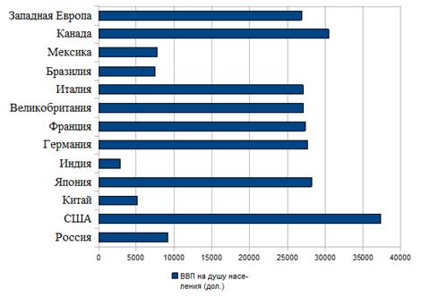 Рисунок 6 — Объем ВВП на душу населения России и других ведущих стран мира