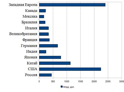 Рисунок 5 — Объем ВВП России и других ведущих стран мира