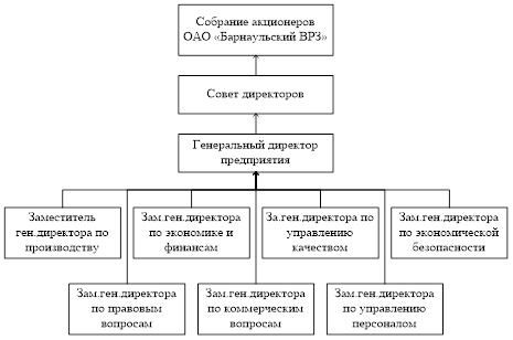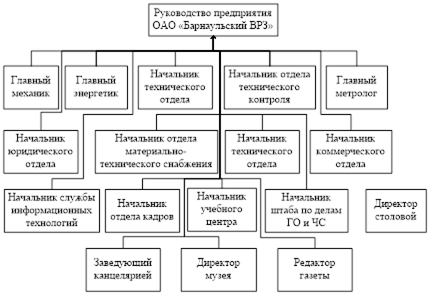 6.2 Управленческая структура предприятия ОАО «Барнаульский вагоноремонтный завод»