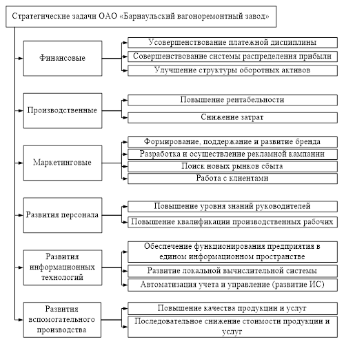 Таким образом, общую структуру стратегических задач предприятия ОАО «Барнаульский вагоноремонтный завод» можно представить на рисунке 22.