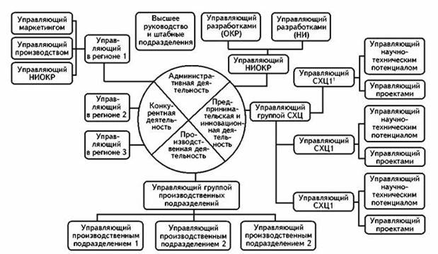 И все же в целом организационная структура оказывается усложненной, прежде всего за счет промежуточных (средних) уровней менеджмента, созданных для координации работы различных отделений. Дублирование функций управления на разных уровнях в конечном счете вело к росту затрат на содержание управленческого аппарата.