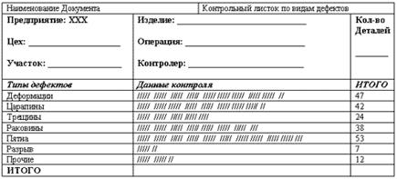 1. Контрольный листок - инструмент для сбора данных и их автоматического упорядочения для облегчения дальнейшего использования собранной информации.