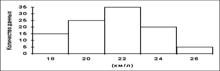 Рис. 2 - Гистограмма потребления топлива для 100 автомобилей