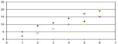 Диаграмма (график) разброса - показывает характер взаимоотношений между двумя переменными. Закономерности взаимосвязи могут как проявляться, так и отсутствовать вообще. Необработанные данные изображаются как функция двух переменных, между которыми затем может обнаружиться взаимосвязь. Например, существует ли зависимость между температурой окружающей среды и числом простудных заболеваний? Если падает температура, растет ли число заболеваний? Чем ближе точки располагаются к диагональной линии, тем более четко существует прямая зависимость двух указанных параметров. Взаимосвязь может быть положительной, отрицательной, либо отсутствовать вообще.