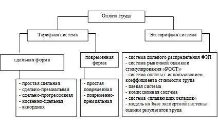 Выделяют тарифную и бестарифную системы оплаты труда. Системы, формы и виды оплаты труда, применяемые на современных предприятиях, представлены на рисунке 1.1.