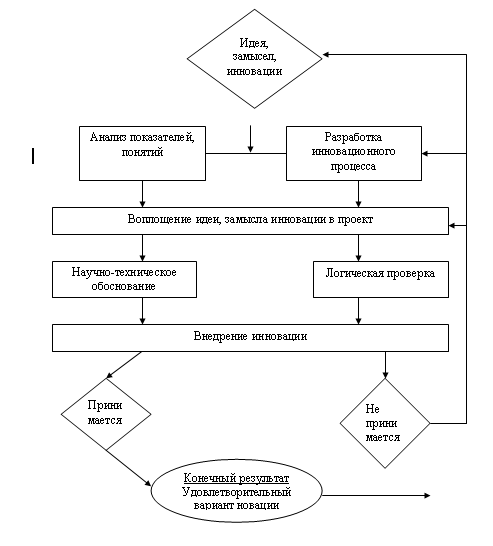 Инновационный процесс служит тем фундаментом прочности, от которого будет зависеть в дальнейшем эффективность использования приемов инновационного менеджмента. Он определяет основную идею инновации, характерные черты и специфику функционирования нового продукта или новой операции, особенности их создания, реализации и продвижения на рынке, комплекс мер по эффективному продвижению и какие приемы следует применять для диффузии конкретной инновации.