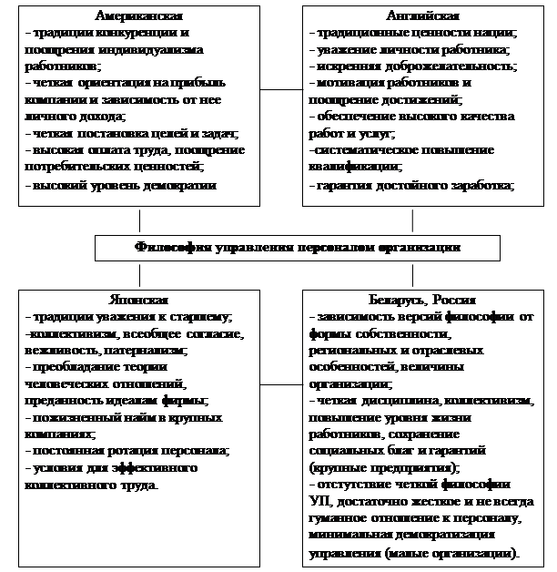 Практика показывает, что философия управления персоналом в организации имеет национальные особенности (рис 1.1.).