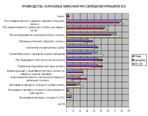 - преимущества, получаемые компанией при соблюдении принципов КСО