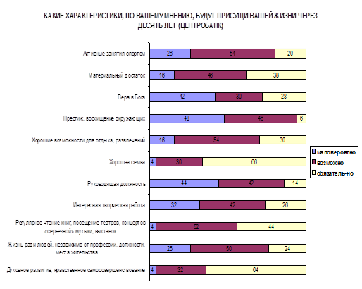 С целью анализа представлений сотрудников предприятий о социальной ответственности бизнеса и влияния на эти представления ценностных ориентаций и социального положения сотрудников в январе 2005 года нами было проведено исследование. В ходе исследования методом анкетирования были опрошены 50 сотрудников Красноярского филиала Центробанка и 50 – НПО ПМ им. академика М.Ф.Решетнева (г. Железногорск).
