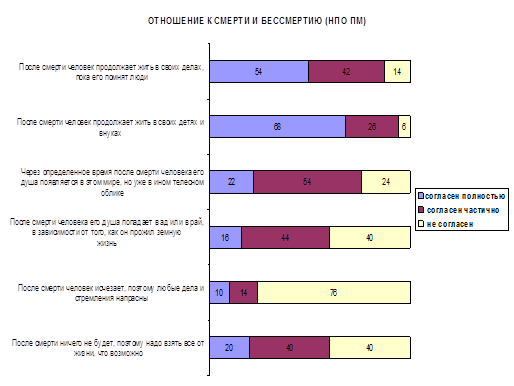 | 2. После смерти человек продолжает жить в своих детях и внуках | 68,0 | 26,0 | 6,0 |