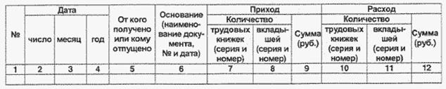 Приходно-расходная книга по учёту бланков трудовой книжки
