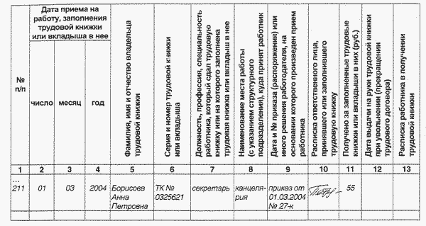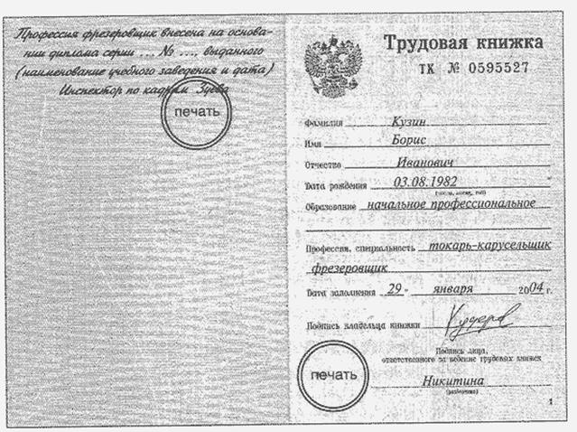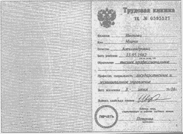 Курсовая работа: Прием на работу. Ведение трудовой книжки