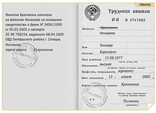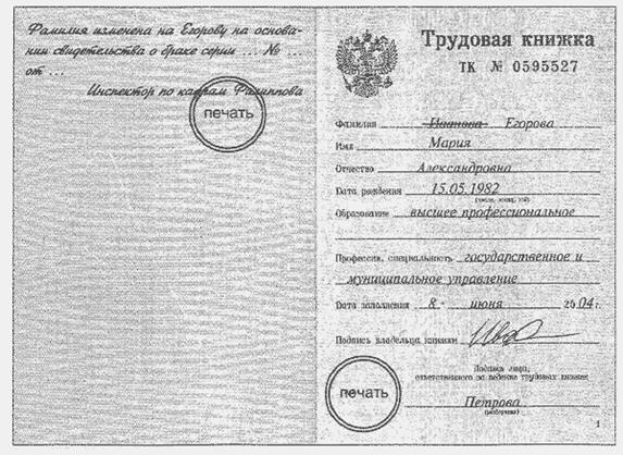 Пример заполнения титульного листа трудовой книжки