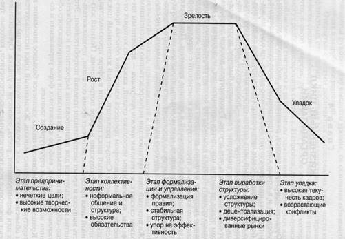 Рассматривая понятие жизненного цикла и свойства организации, можно видеть, что существуют отчетливые этапы, через которые проходят организации, и что переходы от одного этапа к другому являются предсказуемыми, а не случайными.