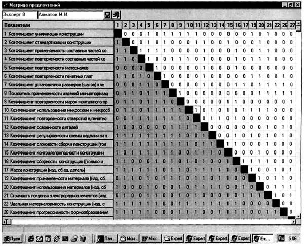 4.5. Диаграмма предпочтений показателей технологичности;