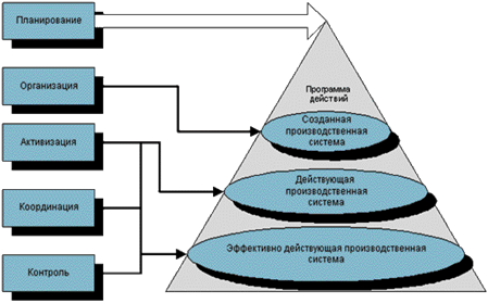 Для создания любого экономического продукта нужно использовать ресурсы производства: рабочую силу, основные средства, сырьё, материалы, информацию, денежные средства. Следовательно, управление предприятием включает управление работниками, средствами производства, материальными ресурсами, финансами. Для функционирования производства на предприятии оно должно получать исходные материалы и реализовывать выпущенную продукцию. Отсюда вытекает необходимость управлять снабжением и сбытом, иметь на предприятии соответствующие службы.