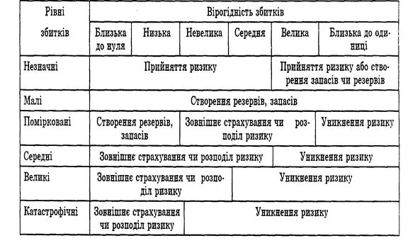 Перелік найбільш доцільних до реалізації методів управління ризиком залежно від рівня та ймовірності прояву ризику наведений у табл. 3.3.1.