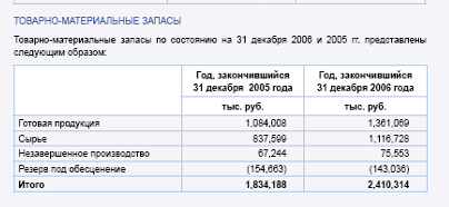 У Концерна велики товарно-материальные запасы (на сумму 1834188 тыс. руб.). Содержание запасов стоит денег. Это расходы на складирование и страхование запасов, а также процент по неиспользуемым запасам. Альтернативная стоимость капитала, омертвленного в запасах, бывает порой очень велика. Вместе с тем, если возникнет дефицит сырья или готовой продукции, начнутся проблемы со стабильностью производства или выполнения заказов, и потребуются дополнительные расходы на срочное пополнение запасов. К тому же наличие запасов позволяет быстрее выполнять заказы клиентов. Чем разнообразнее выпускаемая продукция, тем большими должны быть запасы.