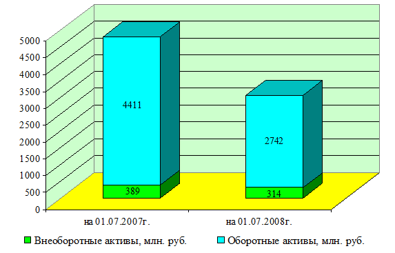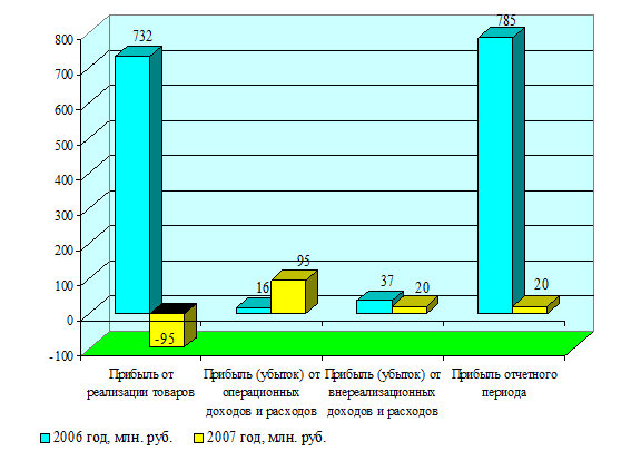 Как видно из данных таблицы 1.1, общий объем товарооборота за 2006 год составил 20374 млн. руб., общий объем товарооборота за 2007 год - 12134 млн. руб., таким образом, следует отметить снижение товарооборота по сравнению с 2006 г. на 8240 млн. руб. в действующих ценах и на 9549,7 млн. руб. в сопоставимых ценах. Темп роста товарооборота в действующих ценах составил 59,6 %. В сопоставимых ценах к 2006 году товарооборот составил 10824,3 млн. руб. Темп роста в сопоставимых ценах равен 53,1 %.