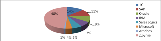 Рисунок 2 Доли основных игроков рынка CRM в РФ