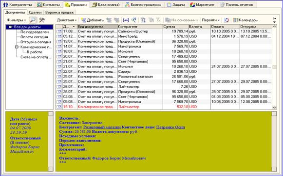 1. Управление клиентской базой, подробная характеристика о каждом клиенте и контактном лице, динамика изменения состояния отношений с клиентами, возможность быстрого ввода и доступа к информации о клиенте;