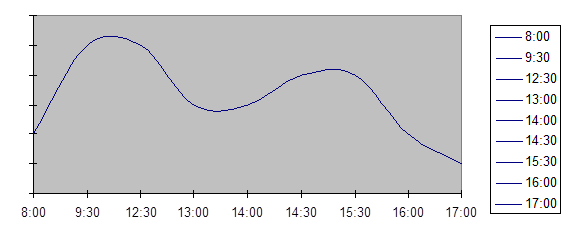 У денний час найменша працездатність, як правило, відзначається в період між 12 і 14 годинами, а в нічний час - з 3 до 4 годин .