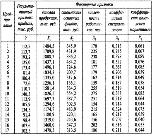 Методику определения влияния характеристик маркетинга на прибыль предприятия рассмотрим на примере семнадцати типичных предприятий, имеющих средние размеры и показатели хозяйственной деятельности.