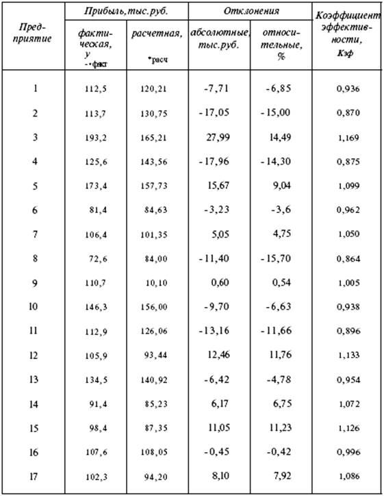 Результаты проведенного регрессионного анализа имеют и более широкое применение, чем для расчета параметров уравнения. Критерий отнесения (КЭф,) предприятий к относительно лучшим или относительно худшим основан на относительном показателе результата: