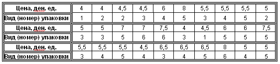 Таблица 4. Таблица решений по вариантам выбора изделий для производства