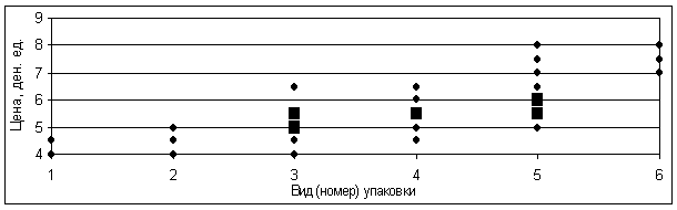 При сборке таких данных по ограниченному числу потребителей, особенно при малой выборке, удобно построение диаграмм рассеивания, позволяющих изучить зависимость между парами переменных, например ценой и внешним оформлением, упаковкой товара. Этими переменными могут быть: