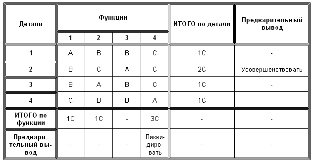 С учетом значимости функции изделия, его узлов, деталей и уровня затрат посредством ценообразования, основываясь на знании спроса на продукцию, определяется уровень ее рентабельности. Все это в совокупности служит цели принятия решения о выборе к производству конкретного изделия или направлений и масштаба его усовершенствования.