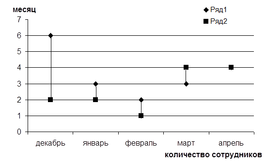 Динамика количества сотрудников компании за декабрь 2001 – апрель 2002 года.