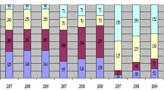 Виробничі запаси збільшилися за рік на 1696 т. грн, а в порівнянні 2007р з 2008р зменьшилися на 1887т. грн. Зменьшилася також величина готової продукції (на 6058т. грн.), а в порівнянні 2007р з 2009р зменьшилися на 13751 грн; зменьшилися грошові кошти (на 2 098 грн.), а в порівнянні 2007р з 2008р зменьшилася на 4502 грн. Зменьшення величини готової продукції свідчить про те, що на підприємстві продукція не лежить на складах, а реалізовується і позитивні тенденції у його роботі. збільшилася сума і частка дебіторської заборгованості за товари та послуги - в абсолютному вимірюванні на Це означає, що підприємство фактично кредитувало своїх партнерів по бізнесу, які вчасно не розраховувалися за товари та послуги, що надавалися підприємством.