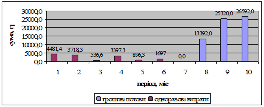 У нашому випадку термін окупності дорівнює приблизно 8,5 місяців, що менше терміну реалізації проекту на 0,5 місяця.