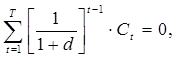 Внутрішня норма прибутковості визначається як коефіцієнт дисконтування (d), при якому поточна величина чистого доходу дорівнює 0