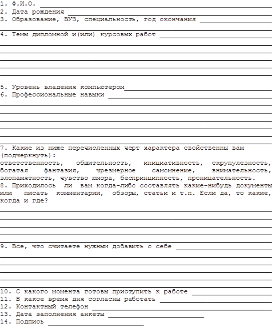 1. Неможливість дієвого відбору претендентів без знання вимог до вакантної посади. Звідси виходить необхідність, по-перше, визначення набору знань і професійних навичок для займає відкриту для найму позицію і формування особистісних вимог до нього, по-друге, виявлення того способу поведінки і дії кандидата в робочій групі, до якої передбачається його відрядити.