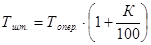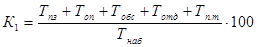 К – сумма норматива времени на обслуживание рабочего места (Тобс.) и норматива времени на отдых и личные потребности (Тотл.) (данные приведены в таблице 2).