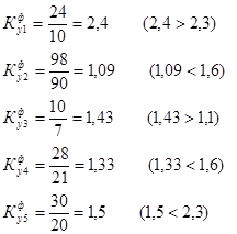 Определим фактические коэффициенты устойчивости по каждому элементу: