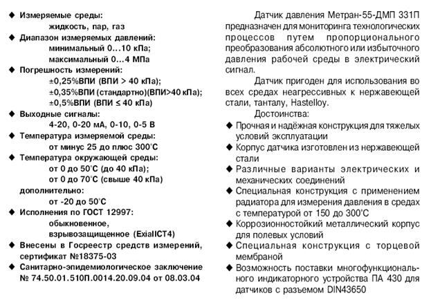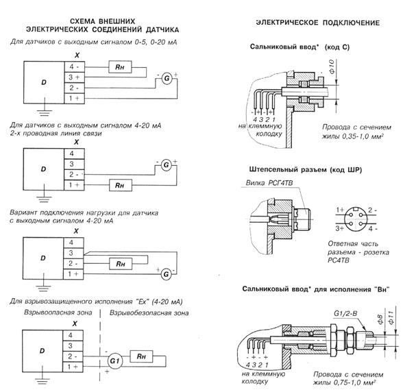 • Выходной сигнал для датчиков общепромышленного исполнения 0-5, 0-20, 4-20 мА; для датчиков с видом взрывозащиты "Ех" - 4-20 мА