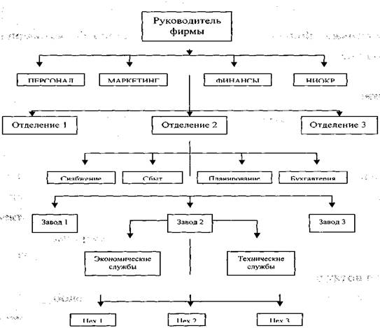 Основной недостаток линейных структур - сильная зависимость результатов работы всей структуры управления от качества решений первого руководителя (рис. 1.1)
