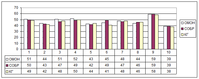Следует отметить – рекомендации и элементы прогнозирования нашей работы будут относиться к группе №1 (ОМОН), как к объектам настоящего исследования. Группа №3 также представляет для нас исследовательский интерес, однако прогнозирование относительно ее членов не соотносится с характером нашей работы, поскольку привлекается в качестве контрольной и содержит выборку кандидатов, преимущественно не имеющих актуального отношения к специальным подразделениям правоохранительных органов.